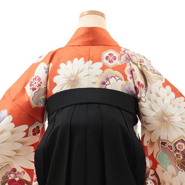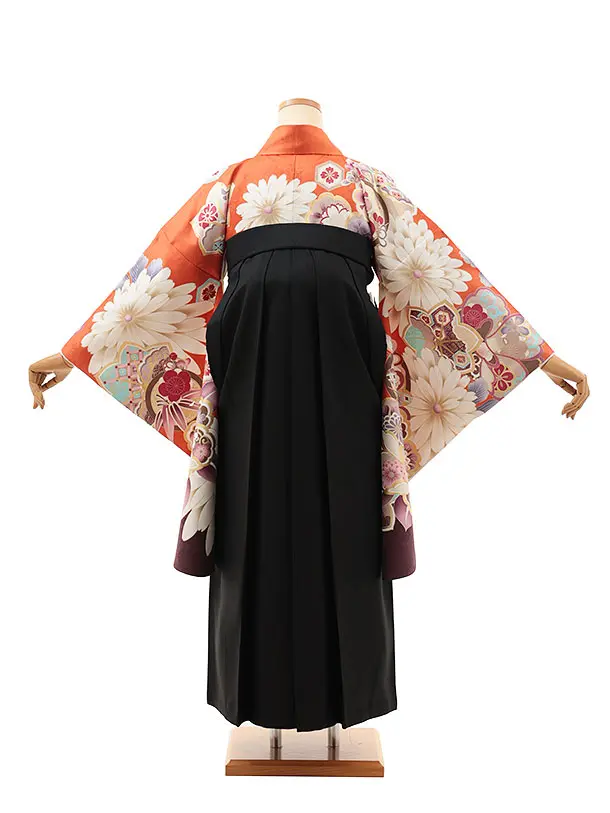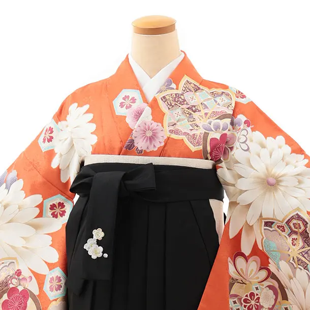卒業式袴レンタルV828 オレンジ古典花×黒