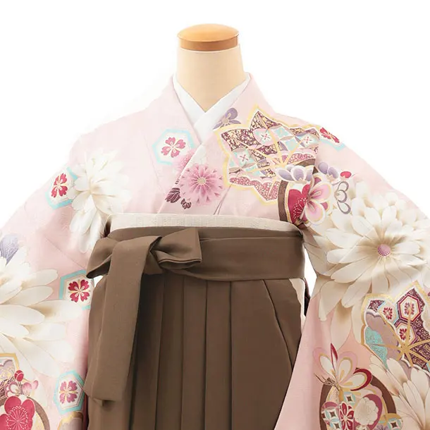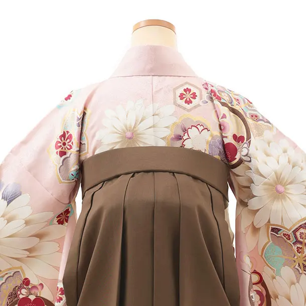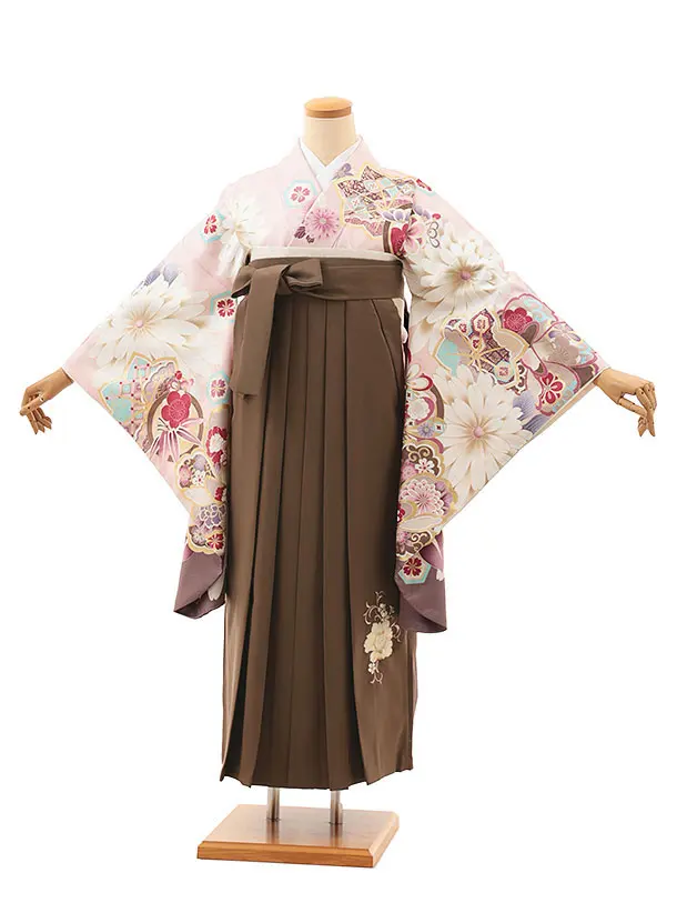 卒業式袴レンタルV830 ピンク古典花×ブラウン