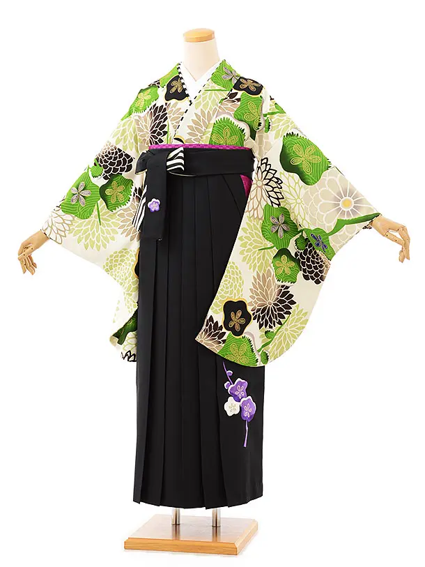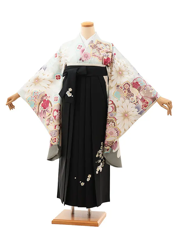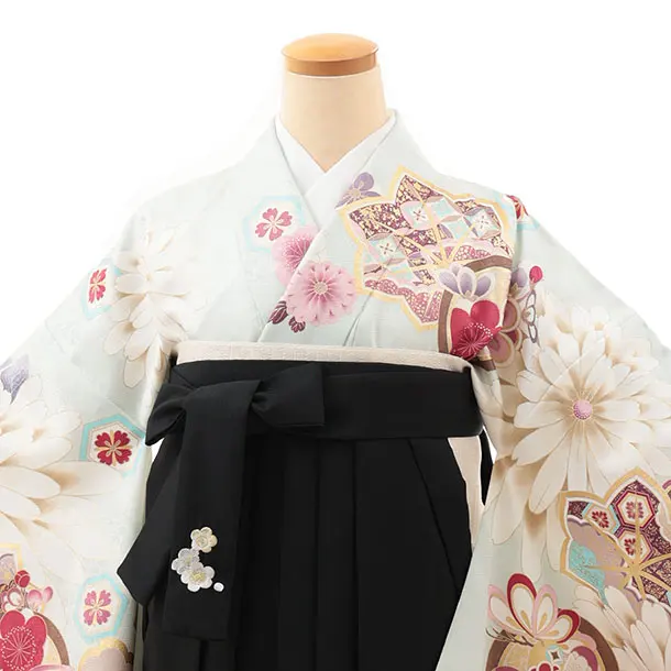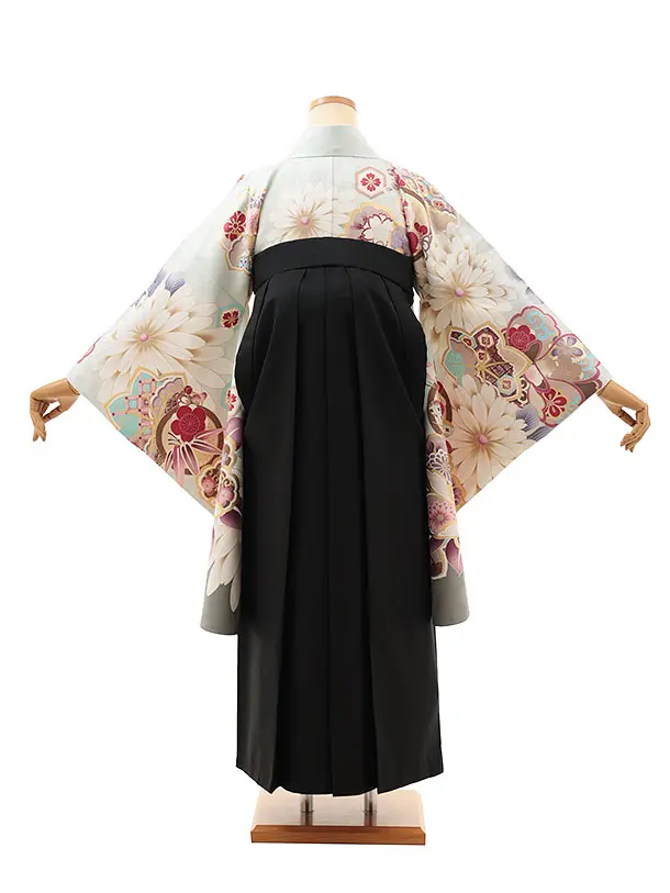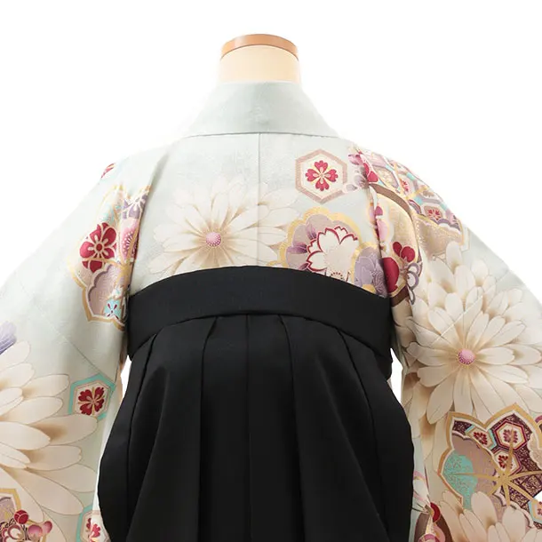 卒業式袴レンタルV832 ペールグリーン古典花×黒