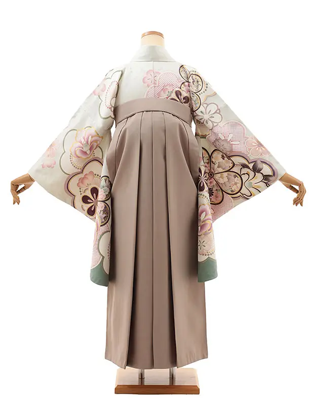 卒業式袴レンタルV840 ペールグリーン梅椿×モカベージュ