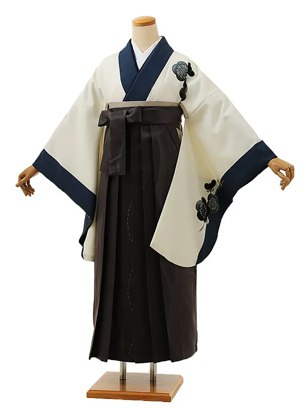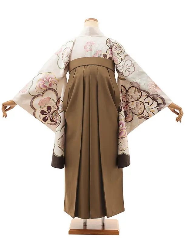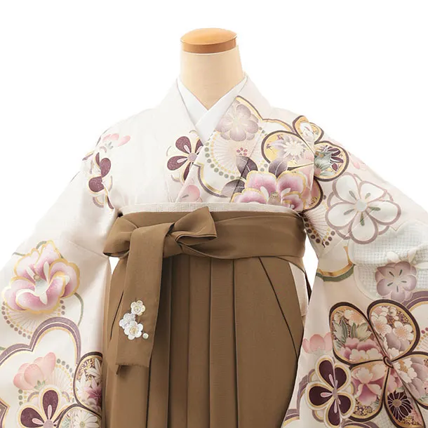 卒業式袴レンタルV842 ホワイトピンク梅椿×モカブラウン