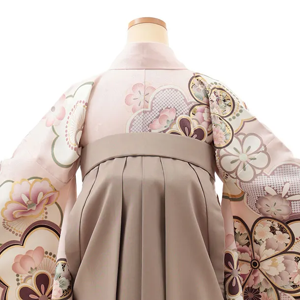 卒業式袴レンタルV845 ピンク梅椿×モカベージュ