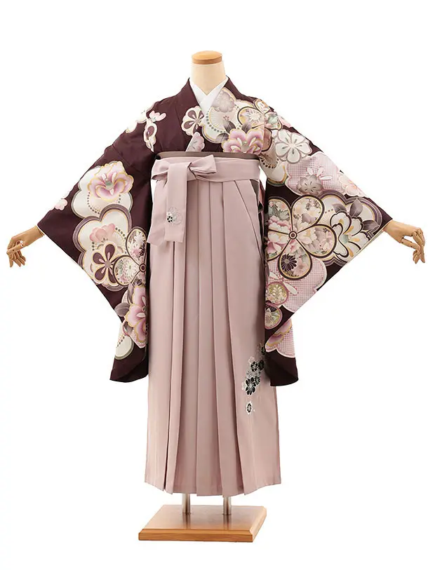 卒業式袴レンタルV846 チョコブラウン梅椿×ピンク