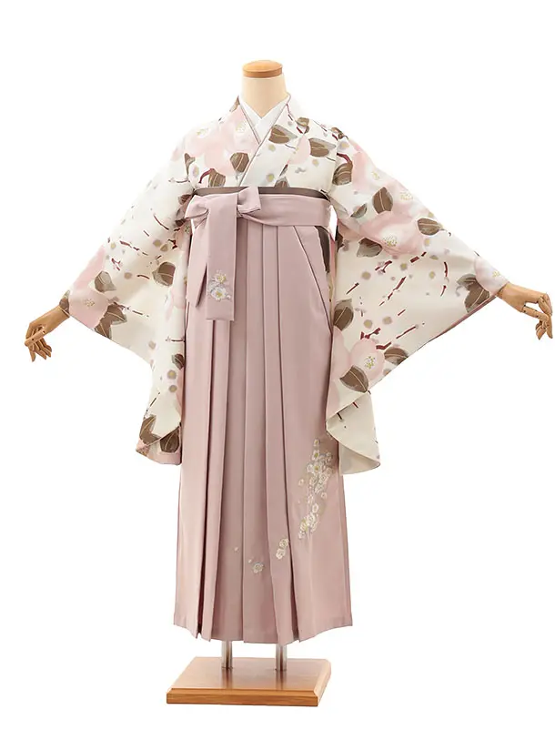卒業式袴レンタルV855 クリーム梅椿×ピンク