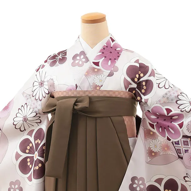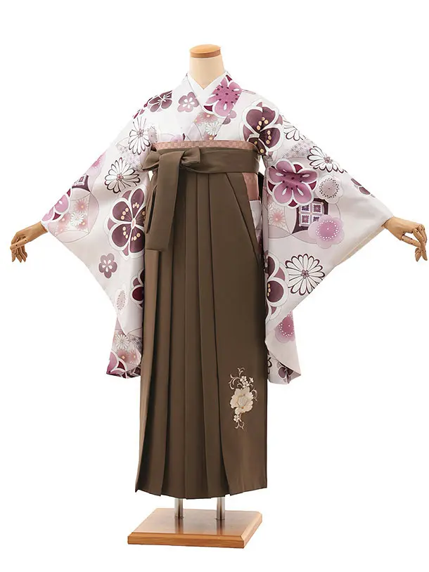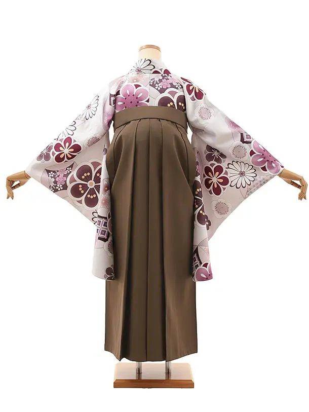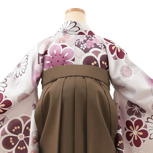 卒業式袴レンタルV862 淡グレー梅菊×ブラウン