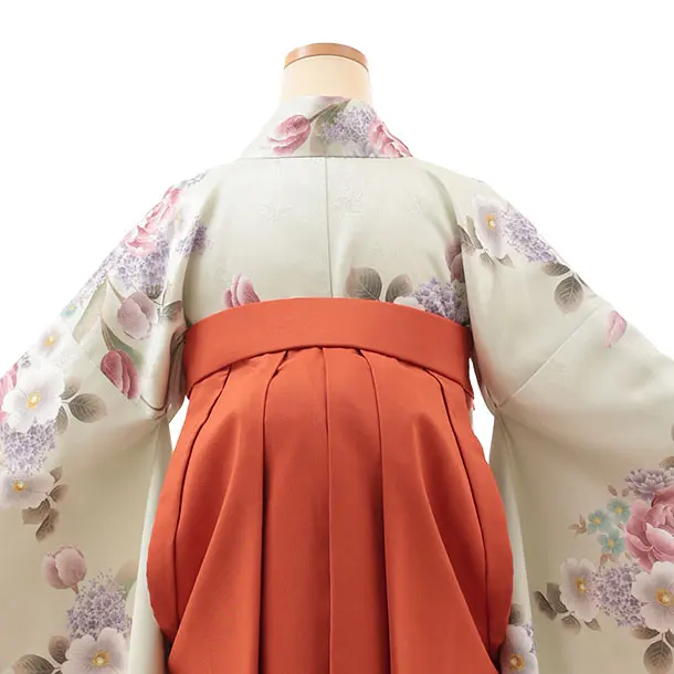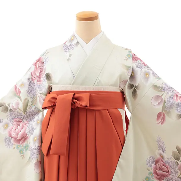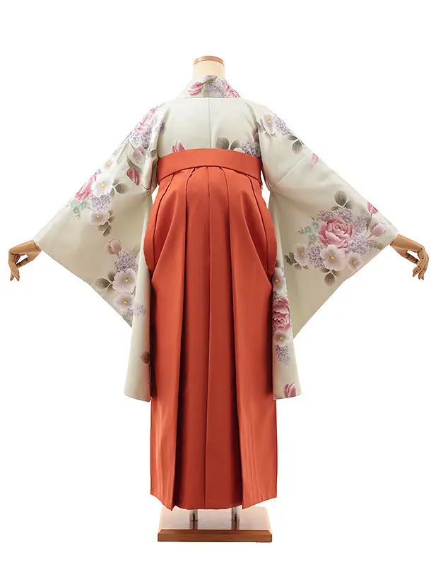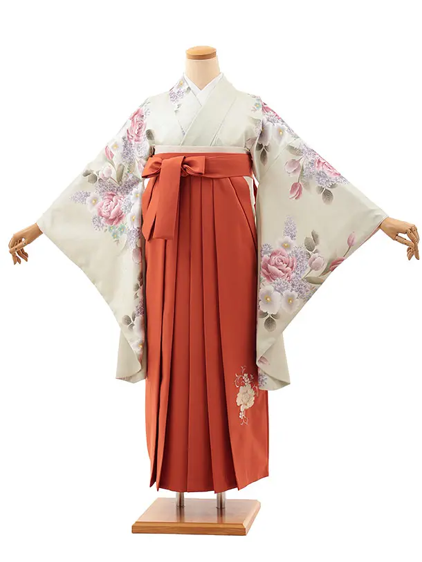 卒業式袴レンタルV865 ペールグリーン洋花×オレンジ
