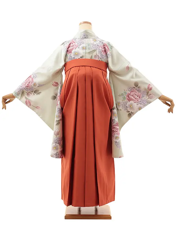 卒業式袴レンタルV866 ペールグリーン洋花×オレンジ