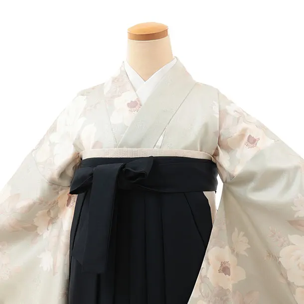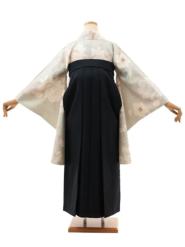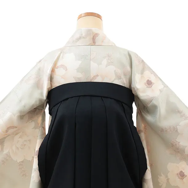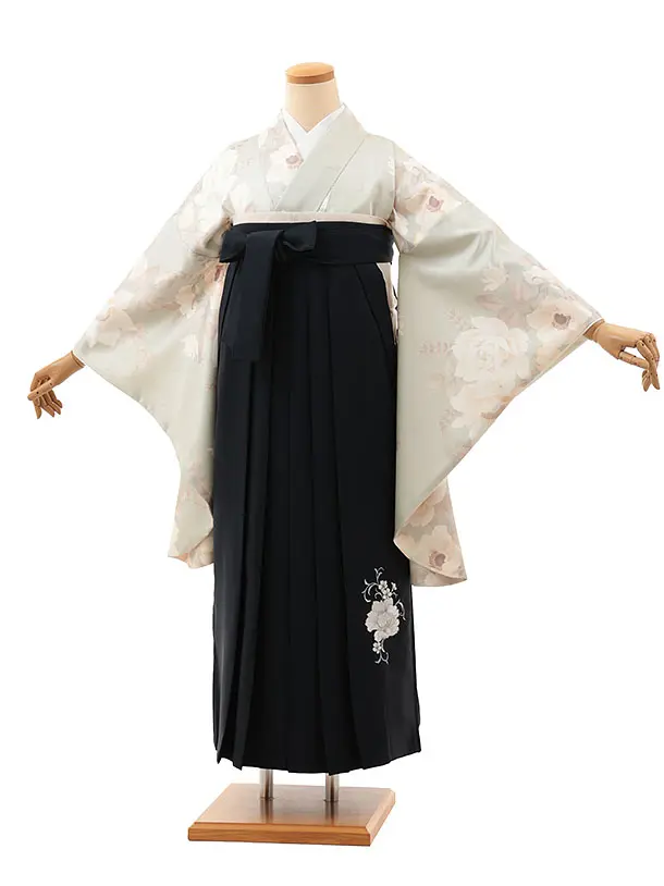 卒業式袴レンタルV867 ペールグリーン バラアネモネ×紺