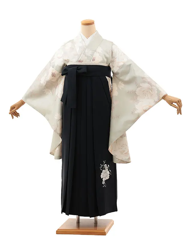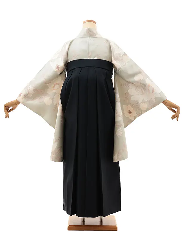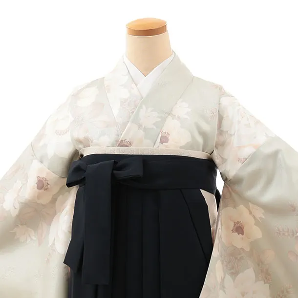 卒業式袴レンタルV868 ペールグリーン バラアネモネ×紺