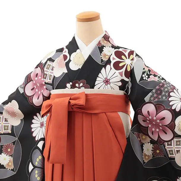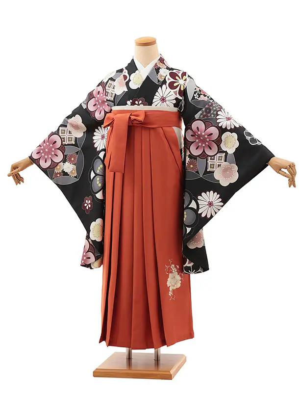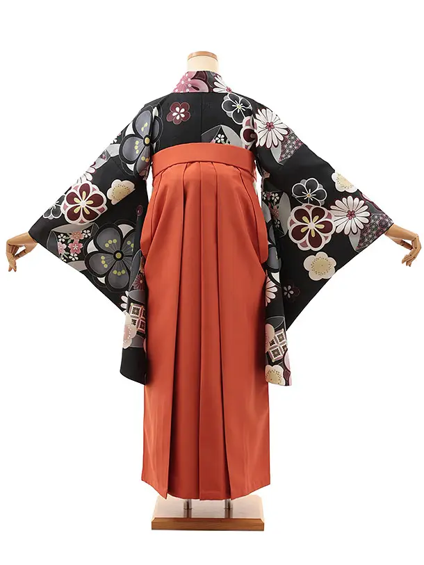 卒業式袴レンタルV870 黒 梅菊×オレンジ