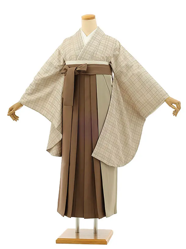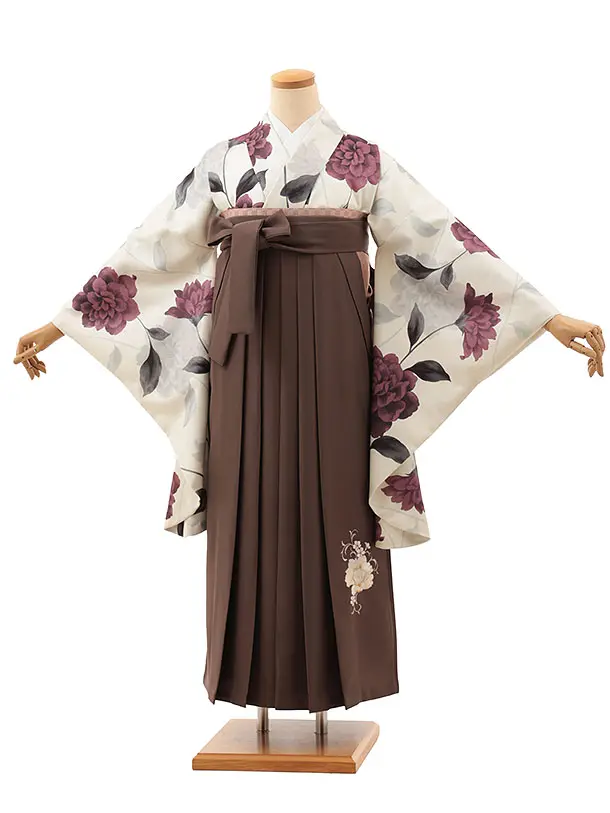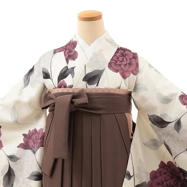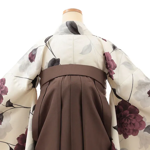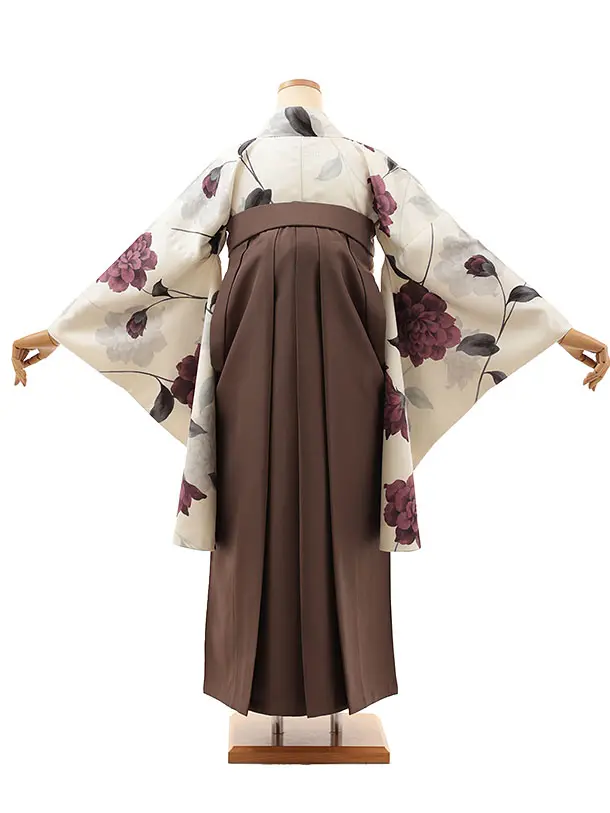 卒業式袴レンタルV872 クリーム洋花×ブラウン