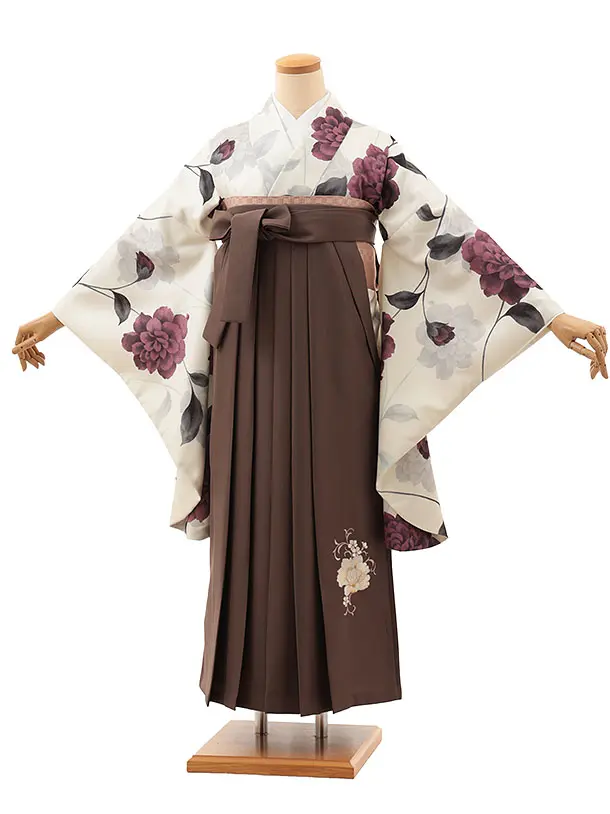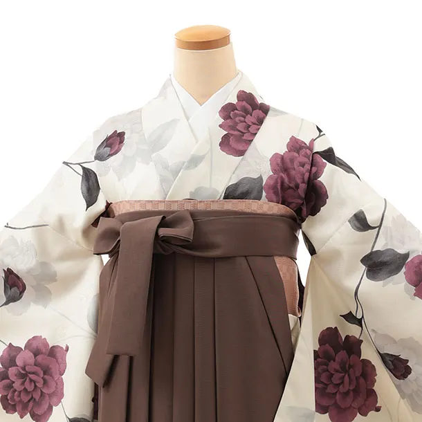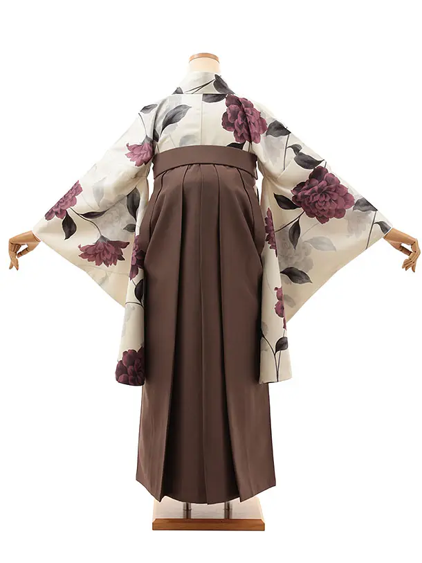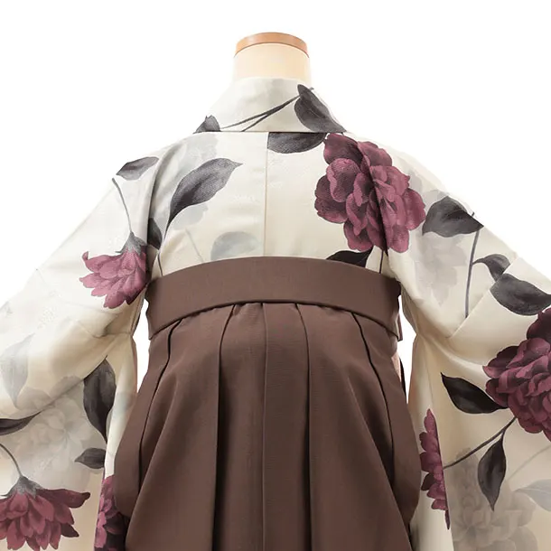 卒業式袴レンタルV873 クリーム洋花×ブラウン