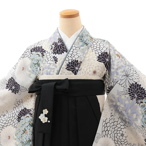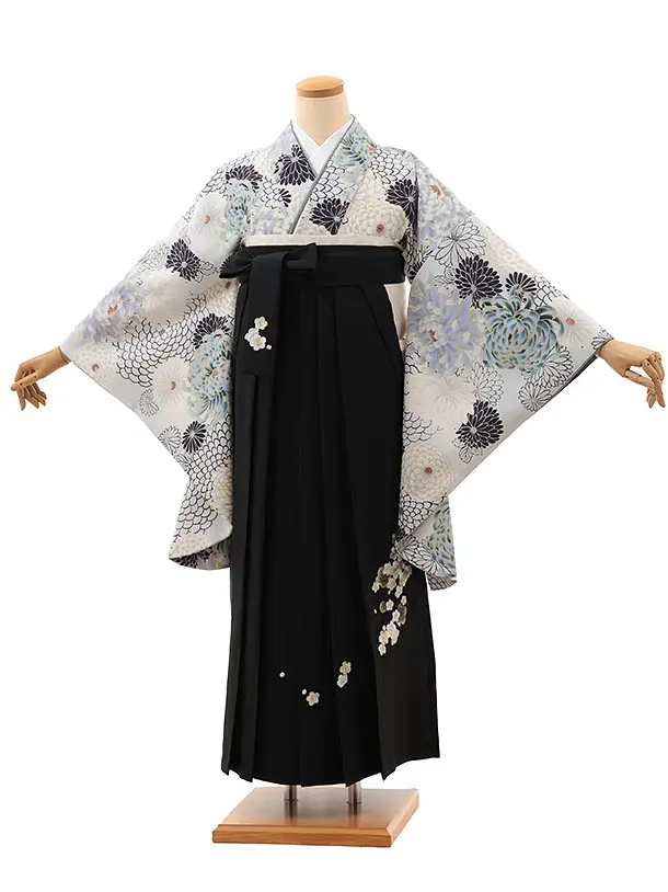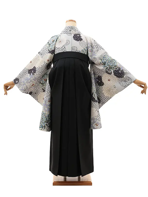 卒業式袴レンタルV874 淡ブルー菊花づくし×黒