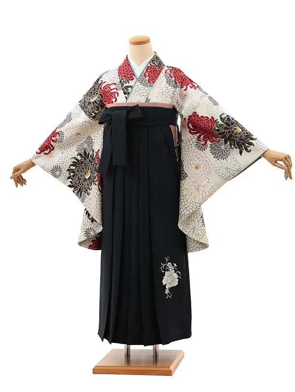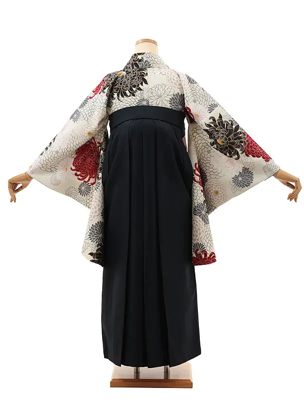 卒業式袴レンタルV876 アイボリー菊花づくし×紺