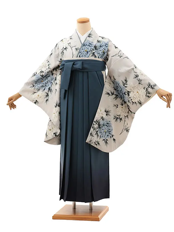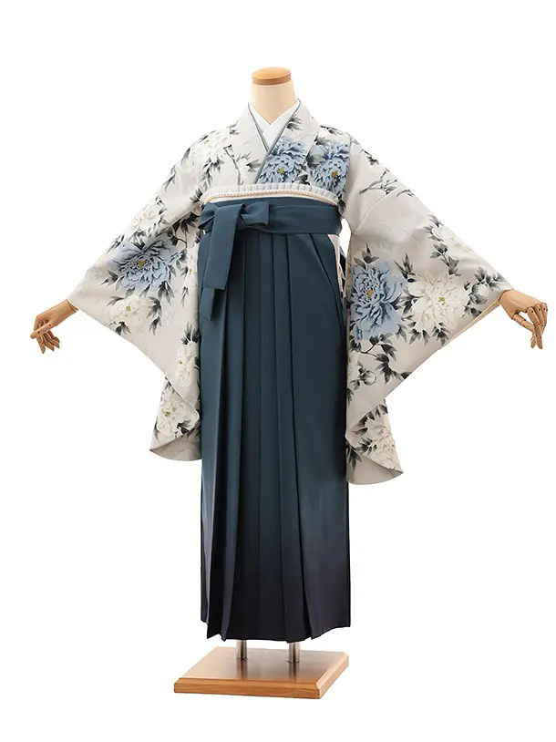 卒業式袴レンタルV886【レース】 薄グレー銀通し花×ブルーぼかし