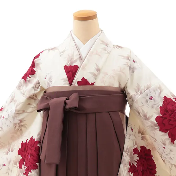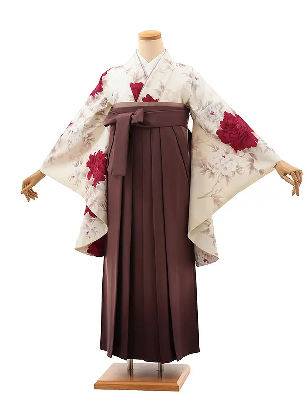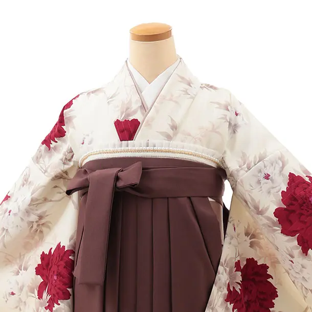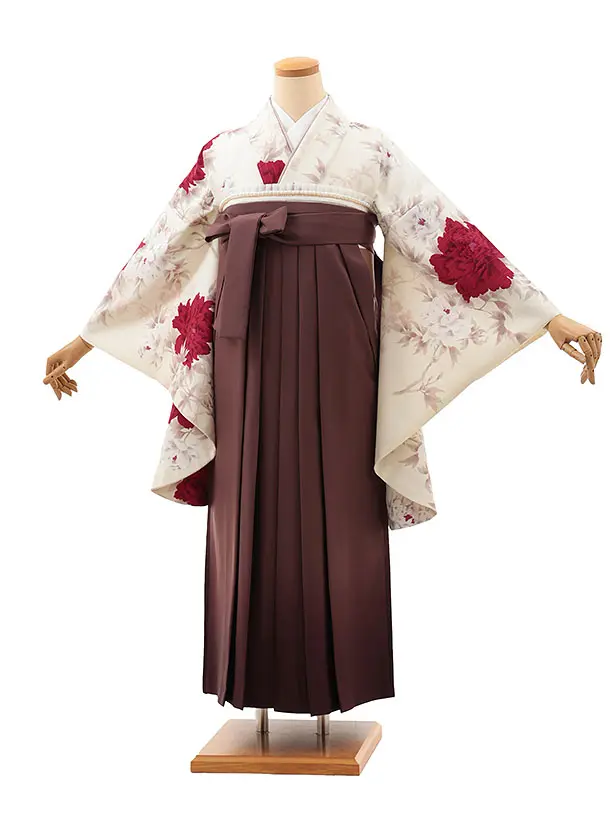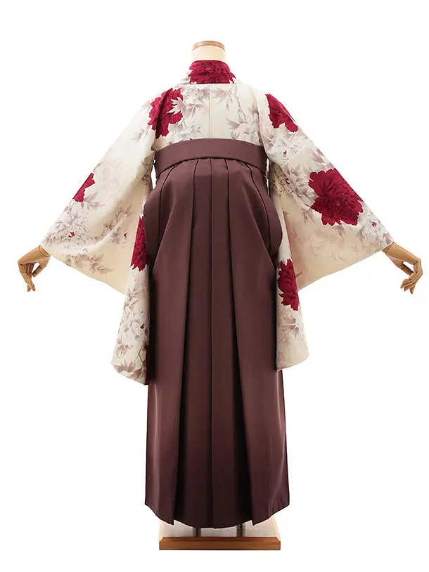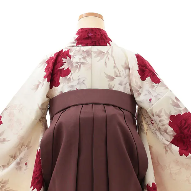 卒業式袴レンタルV887【レース】 クリーム銀通し花×ブラウンぼかし