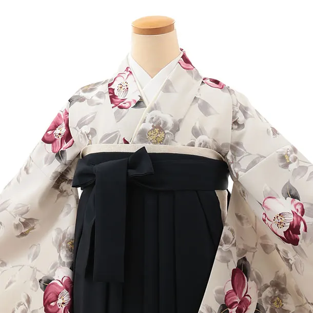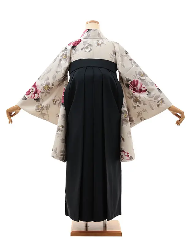 卒業式袴レンタルV891 薄ベージュ椿×紺