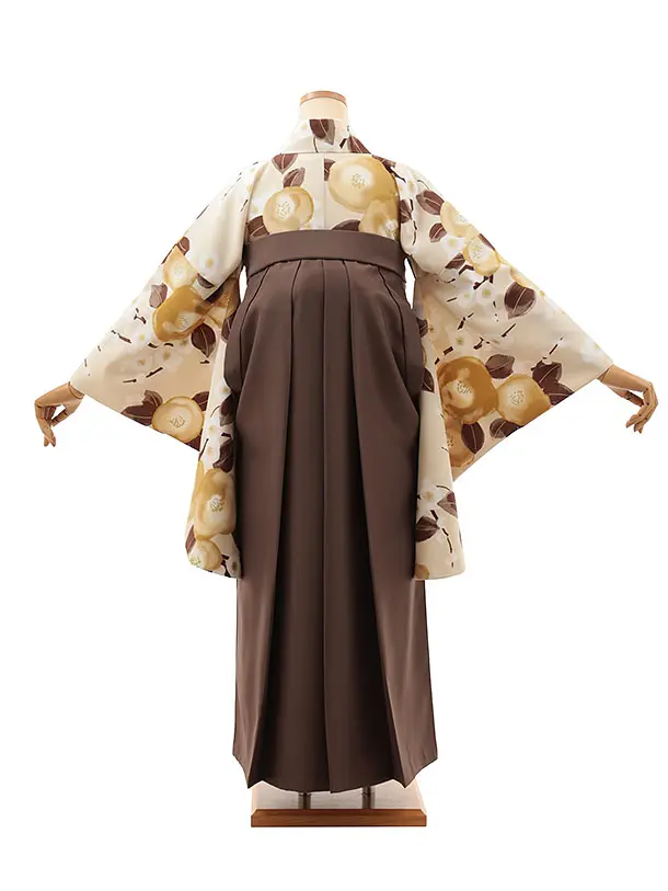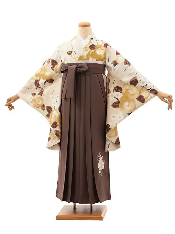 卒業式袴レンタルV892 クリームベージュ梅椿×ブラウン