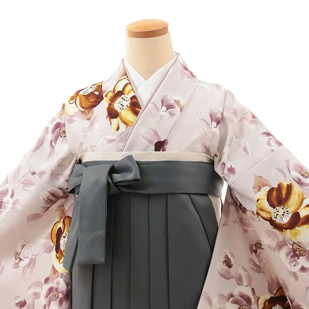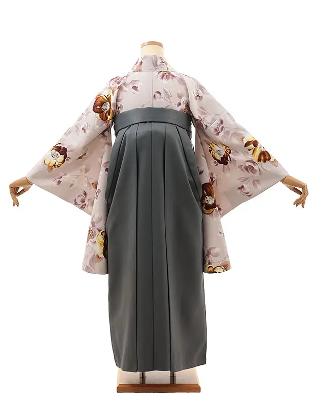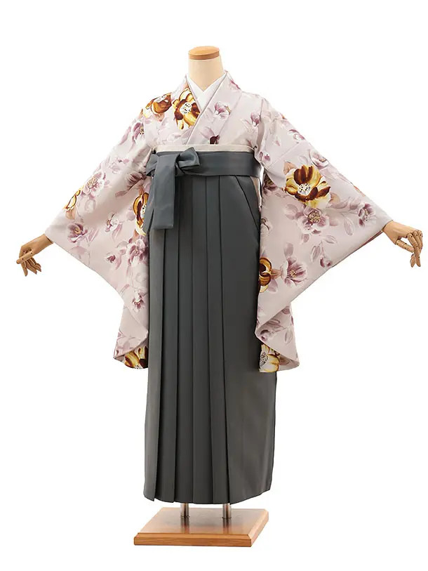 卒業式袴レンタルV895 薄パープル椿×グレーレザー調