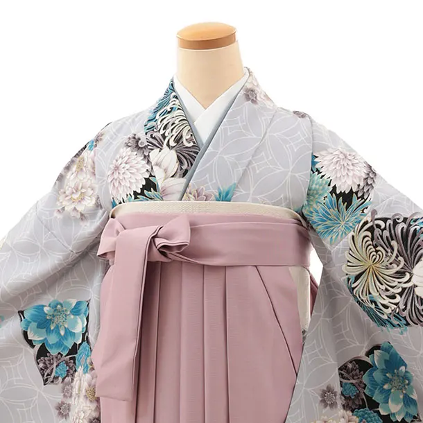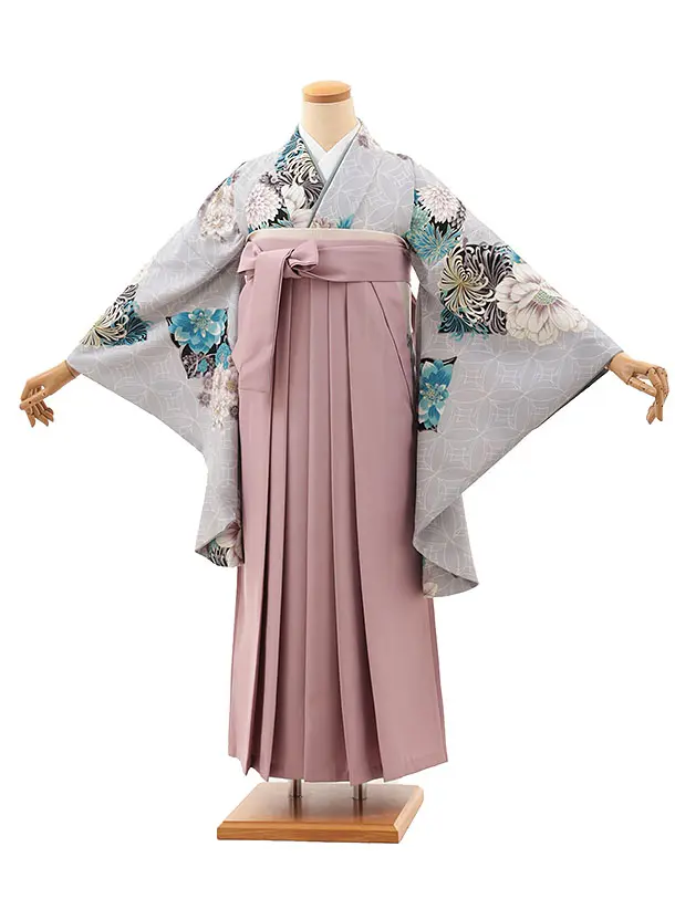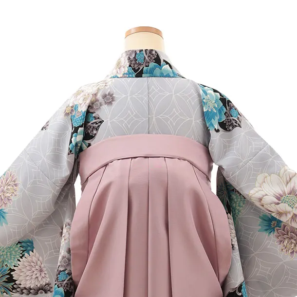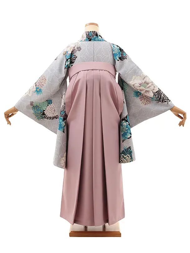 卒業式袴レンタルV906 アイスブルー銀通し 菱に花×パープルピンク