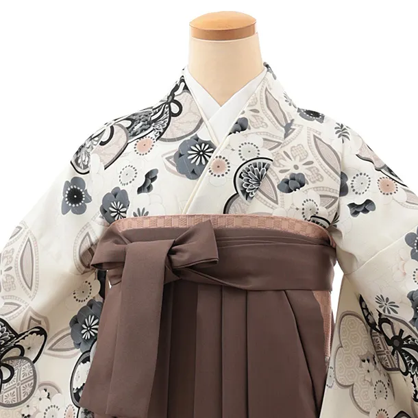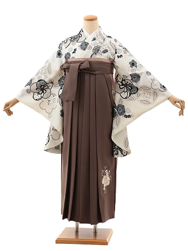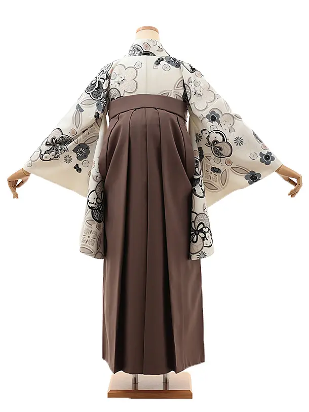 卒業式袴レンタルV911 白銀通し梅×ブラウン