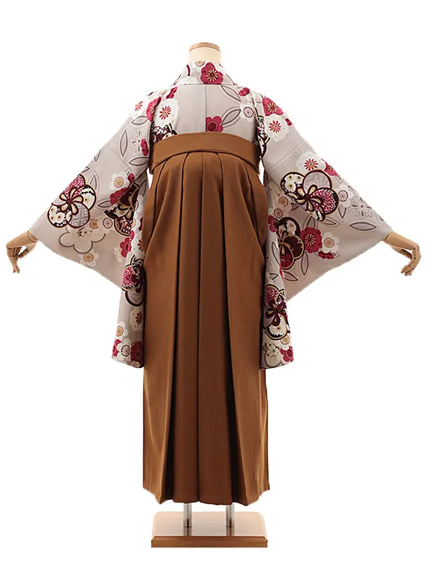 卒業式袴レンタルV916 グレージュ銀通し梅×コーデュロイキャメルブラウン