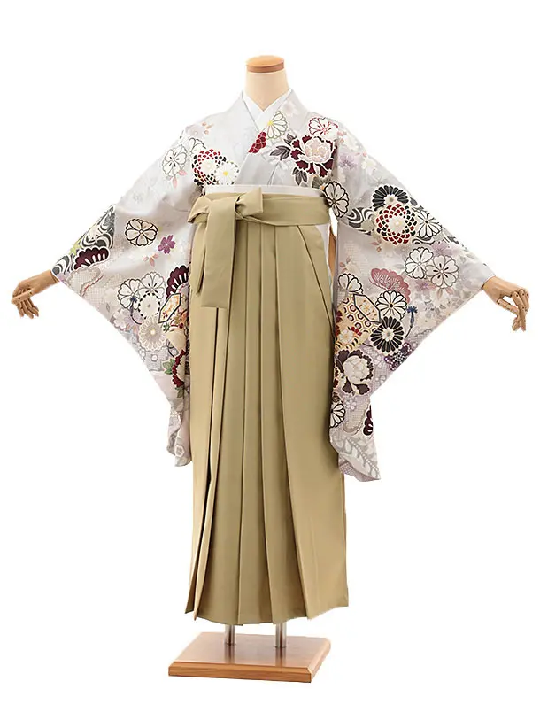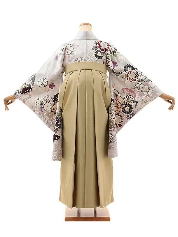 卒業式袴レンタルV923【正絹】薄パープルグレー貝桶に花×ベージュ