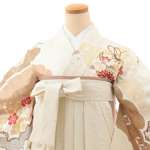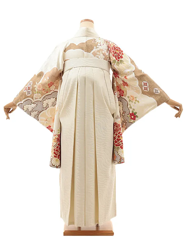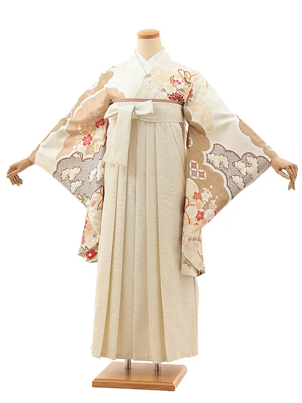 卒業式袴レンタルV930【正絹】クリーム雲取り花×アイボリー波柄