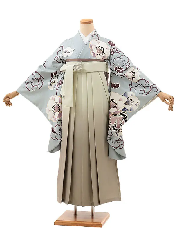 卒業式袴レンタルV937 アイスブルー梅×ベージュぼかし