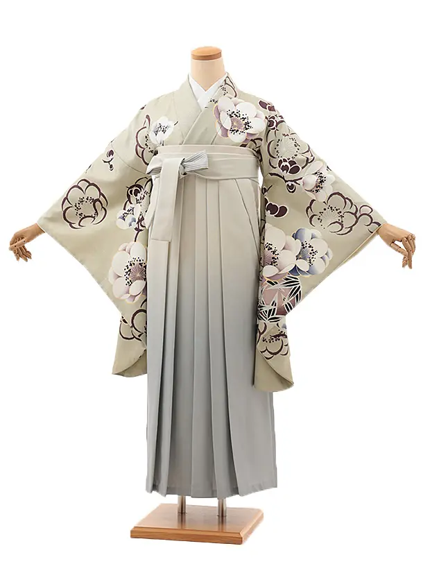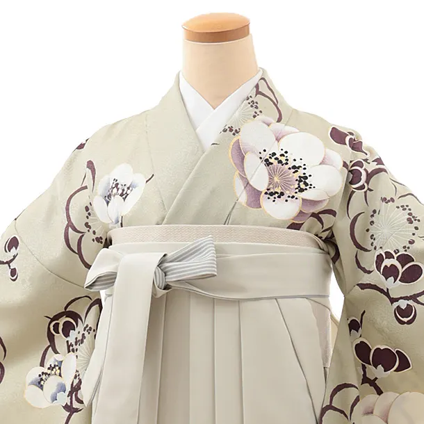 卒業式袴レンタルV939 薄抹茶グリーン梅×ベージュグレーぼかし