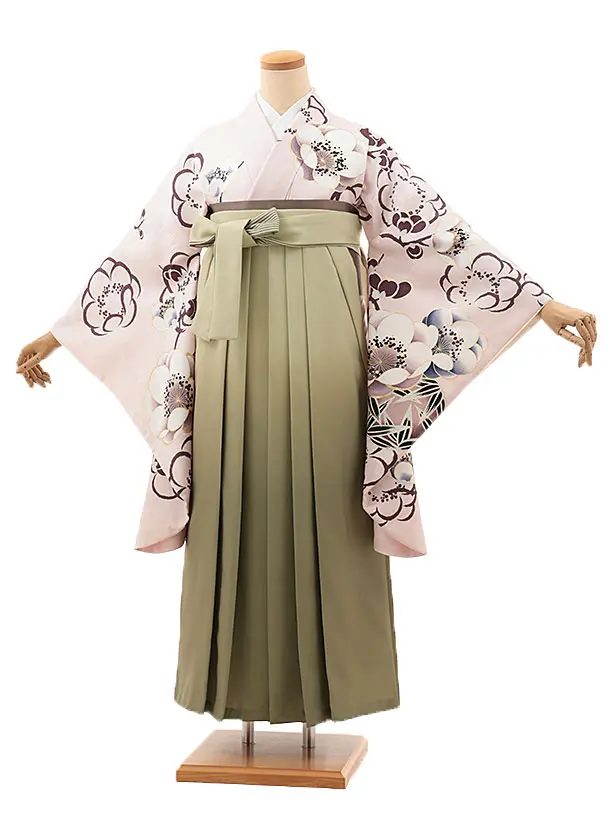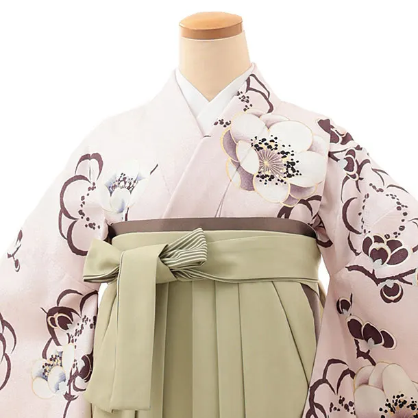 卒業式袴レンタルV943 ピンク梅×グリーンぼかし
