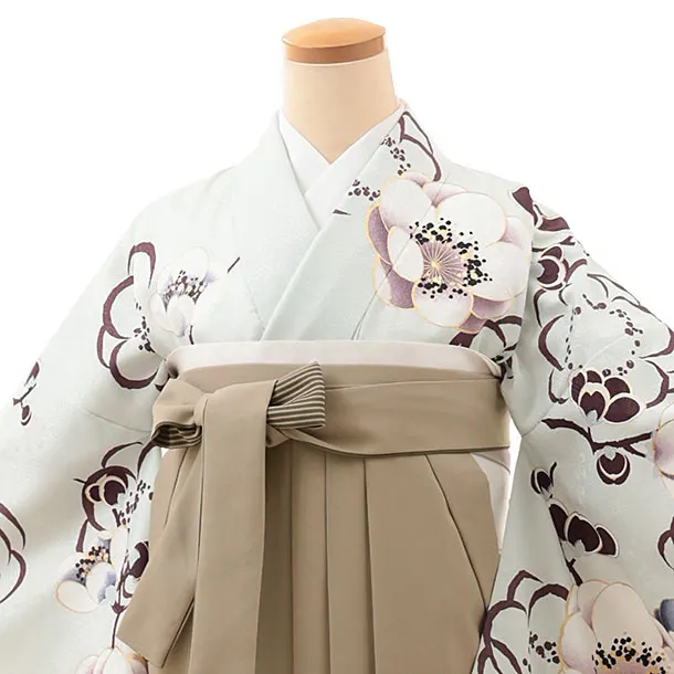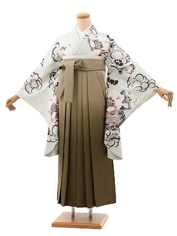 卒業式袴レンタルV945 ペールグリーン梅×モカベージュぼかし