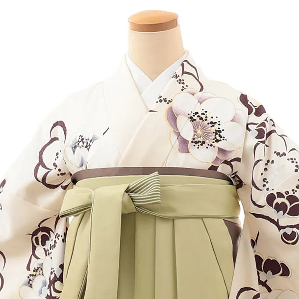 卒業式袴レンタルV947 クリーム梅×グリーンぼかし