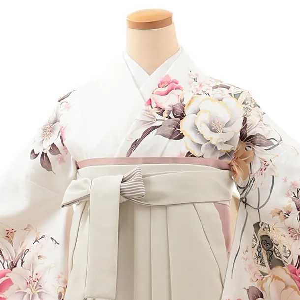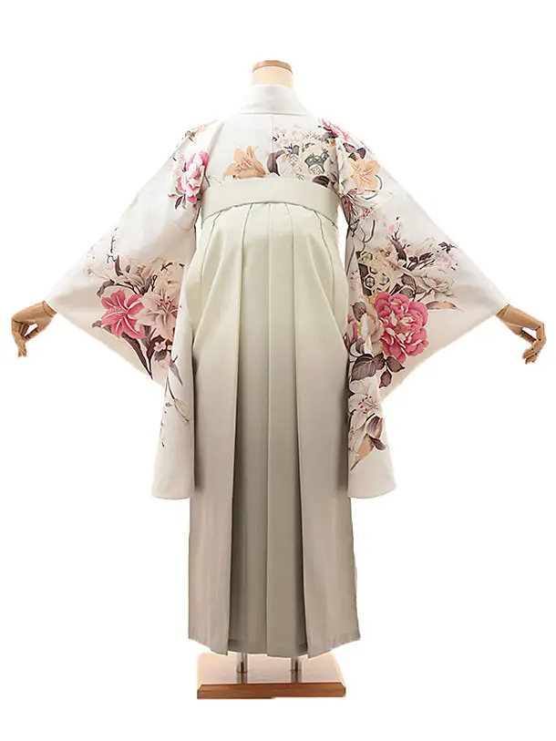 卒業式袴レンタルV971 白地百合牡丹×ベージュぼかし