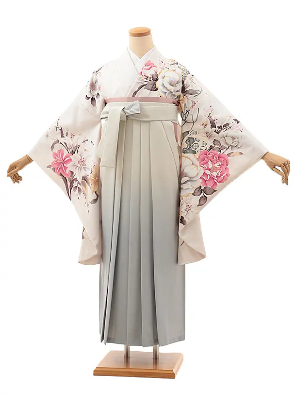 卒業式袴レンタルV974 淡ピンク百合牡丹×ベージュグレーぼかし