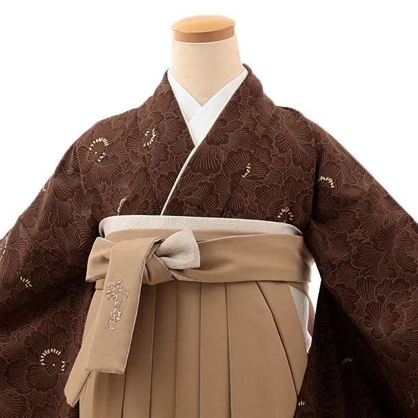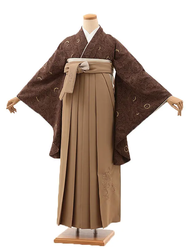卒業式袴レンタルV976 Kansai ココアブラウン花×モカブラウン