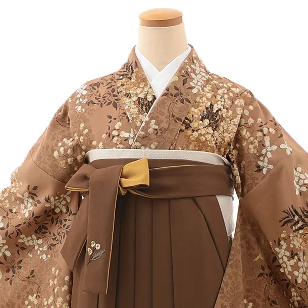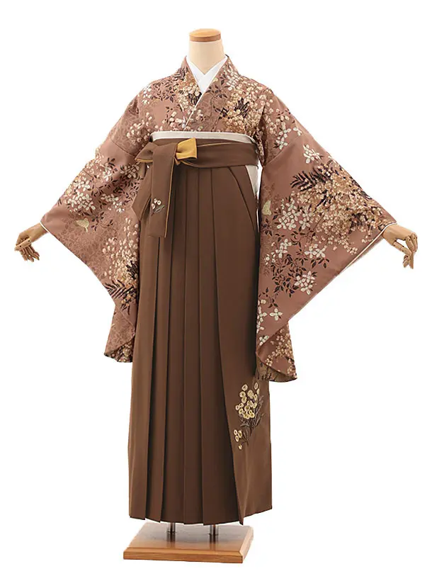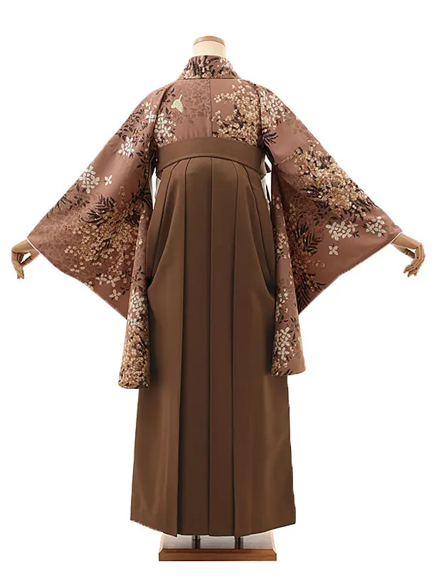 卒業式袴レンタルV978 Kansai ピンクブラウンミモザ×ブラウン