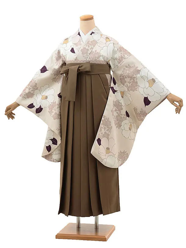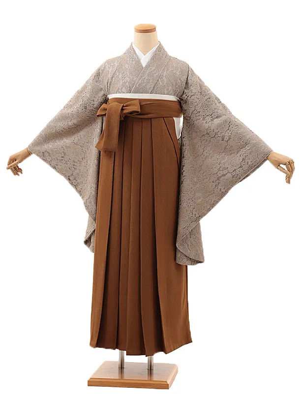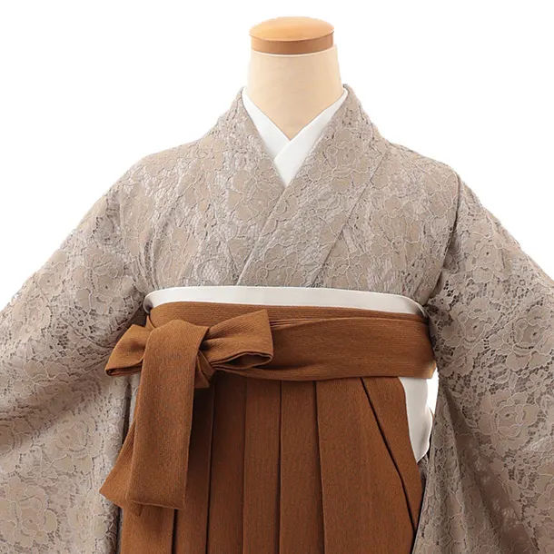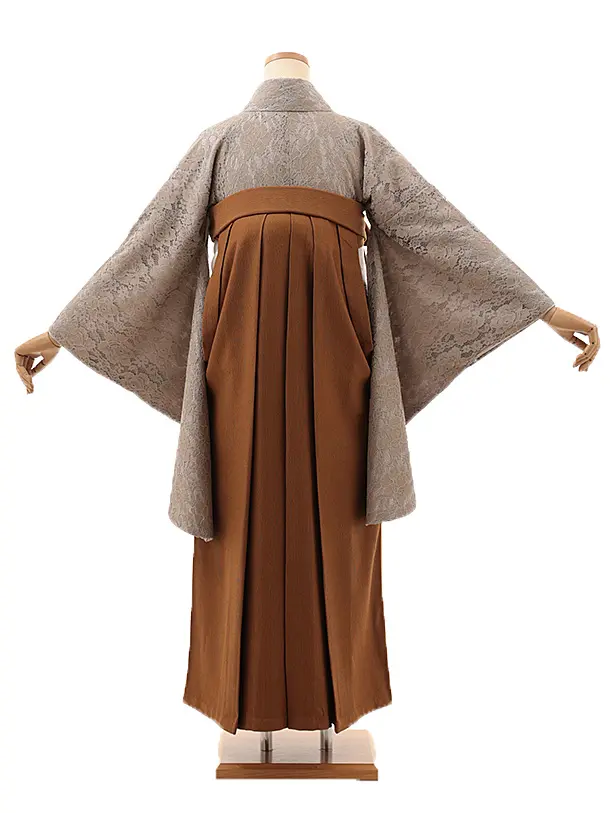 卒業式袴レンタルV980 グレージュレース×キャメルブラウンコーデュロイ