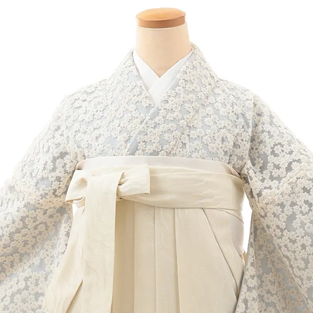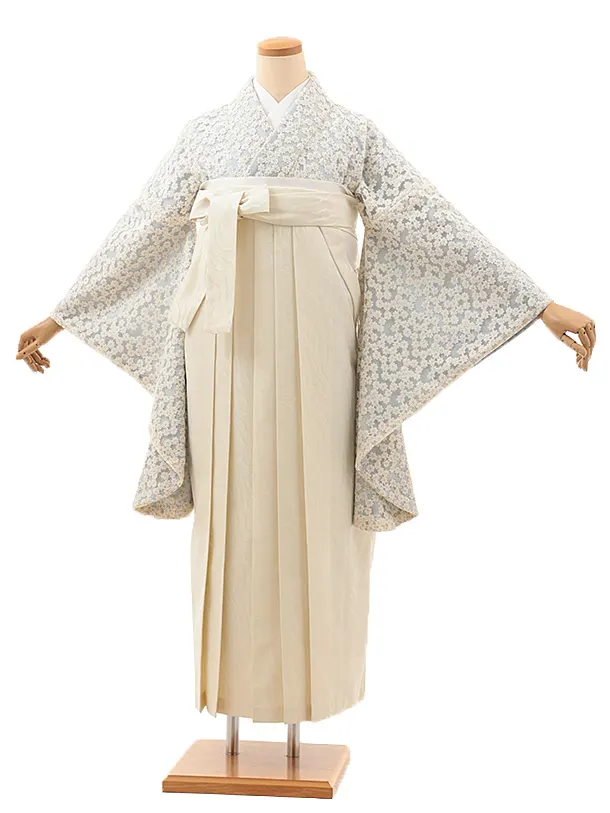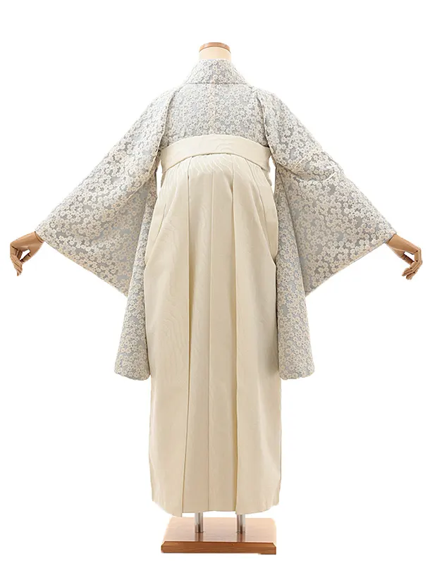 卒業式袴レンタルV984 ペールブルー小花レース×クリーム変わり柄