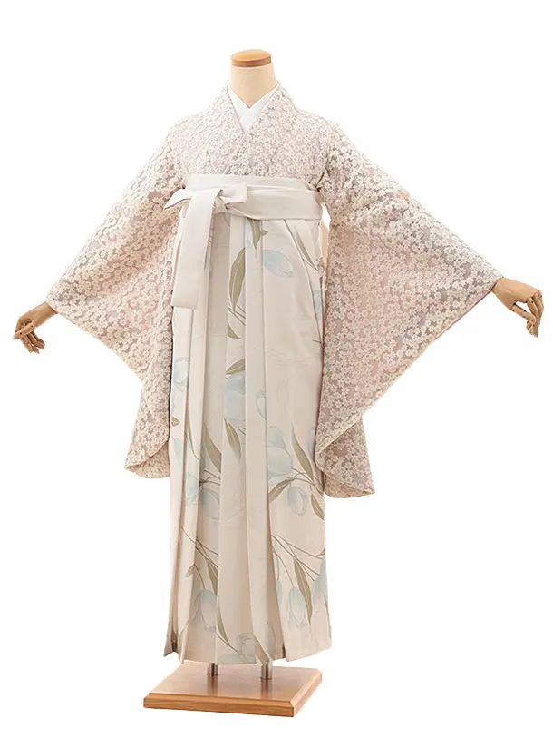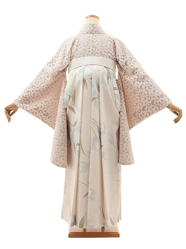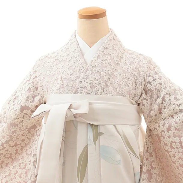 卒業式袴レンタルV987 ピンクベージュ小花レース×ホワイトガーデン