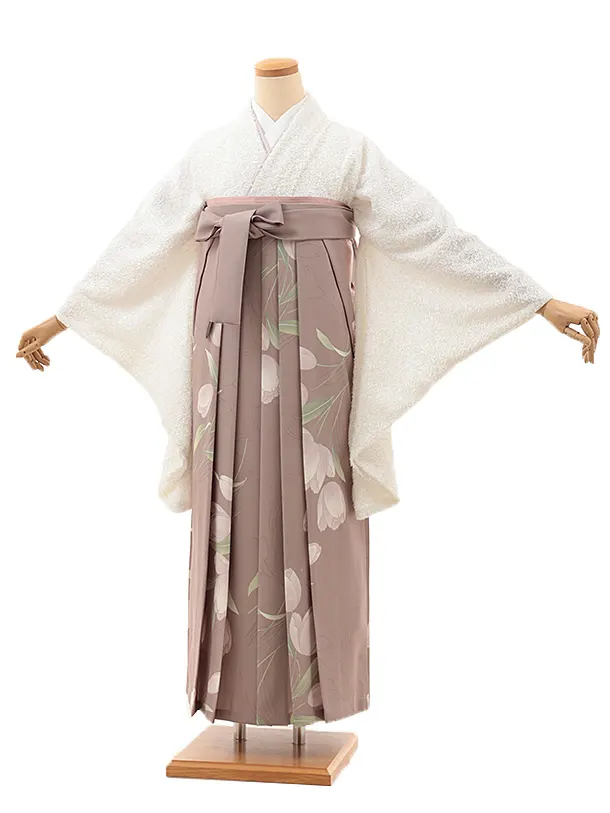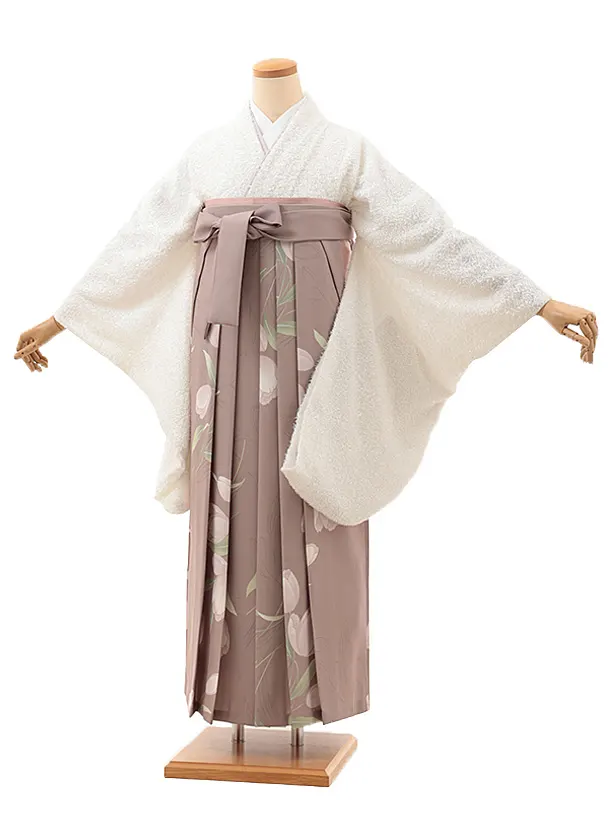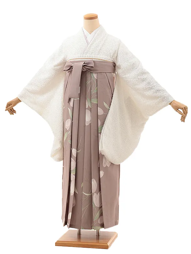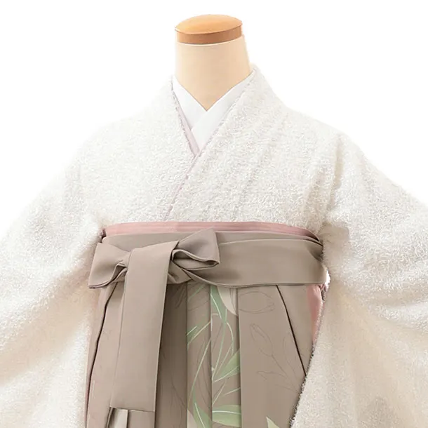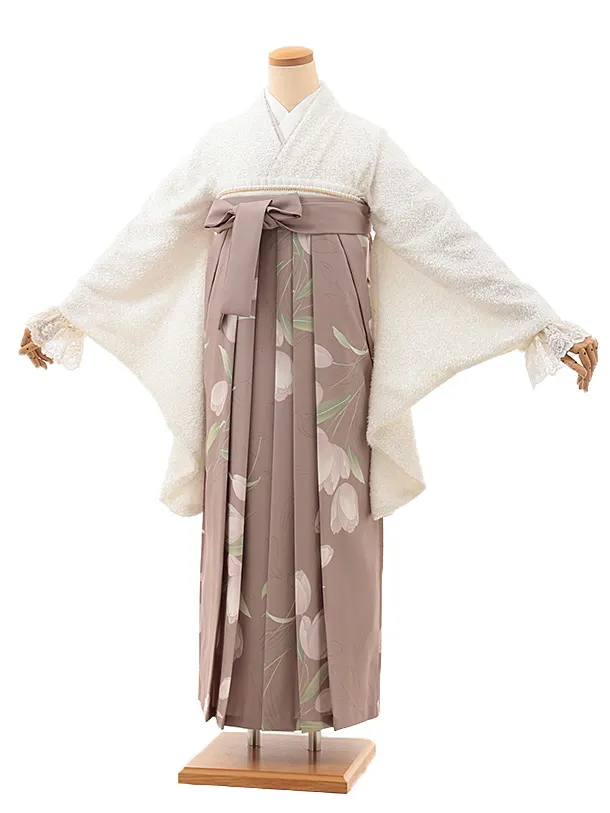 卒業式袴レンタルV996【レース】 ホワイトシャギー×スモーキーベージュガーデン