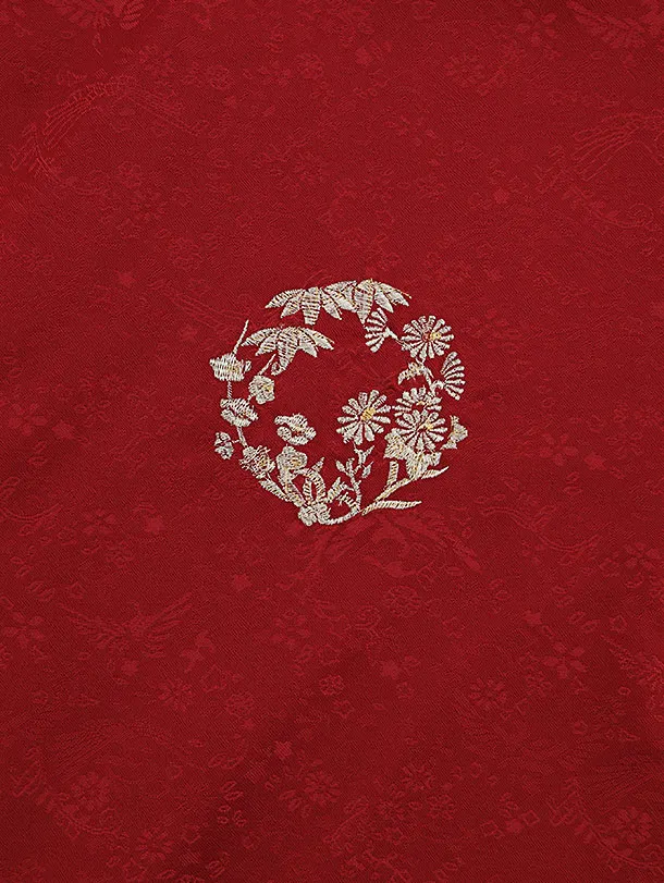 赤地一色の中にシンプルな花紋入りの色無垢です。