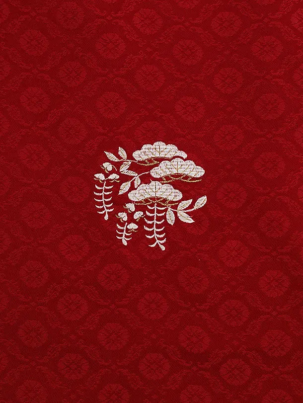 赤地一色の中にシンプルな松紋入りの色無垢です。
