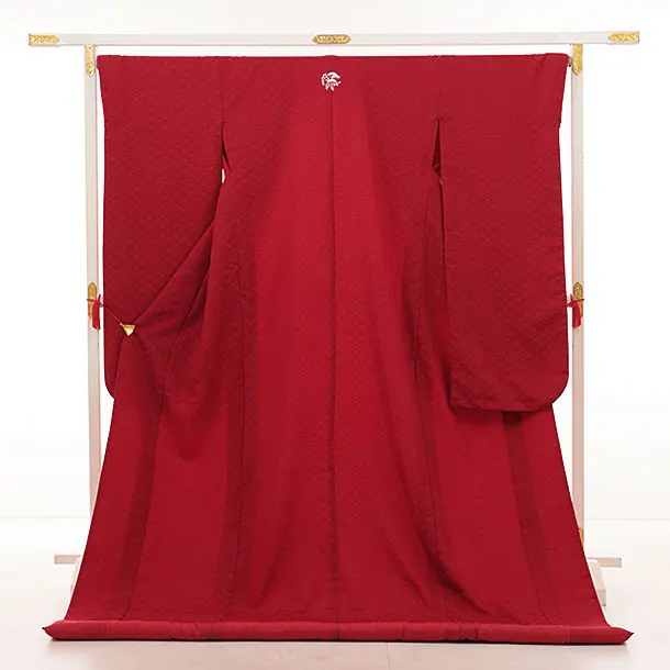 赤地一色の中にシンプルな松紋入りの色無垢です。