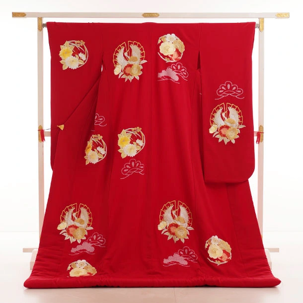 色打掛レンタル1025 赤地 鶴丸花文