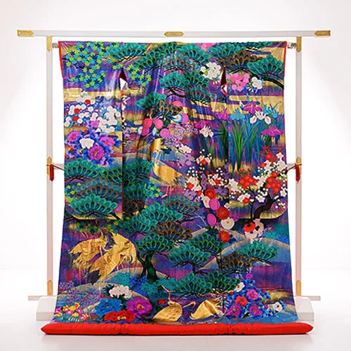 色打掛レンタルE167 手猫友禅 紫 庭園
