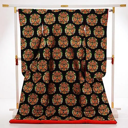色打掛レンタルE182 黒地 丸紋 鳳凰