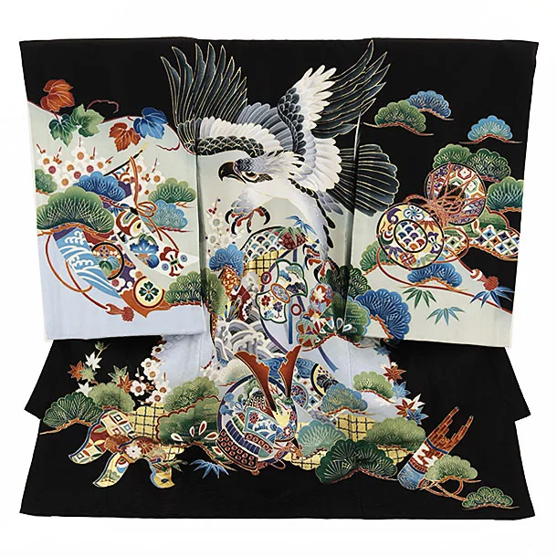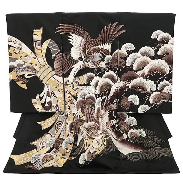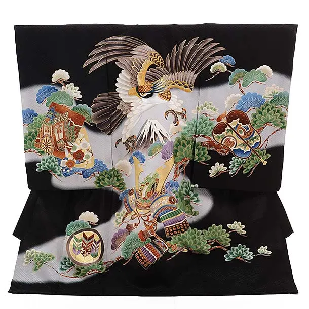 男児産着 お宮参り レンタル 正絹 1340 黒地 松に虎 ししゅう