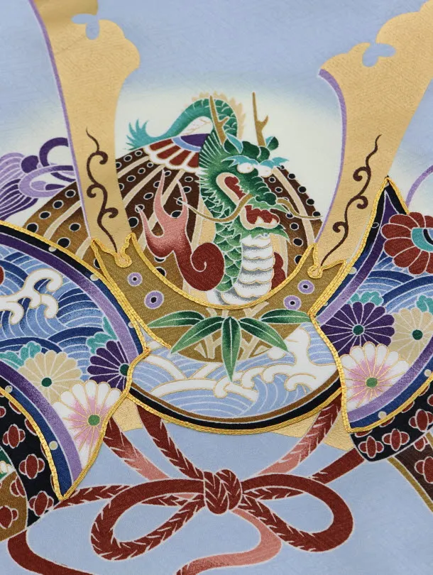 男児産着 お宮参り 1557 単衣 薄ブルーグレー地 松竹梅 かぶと