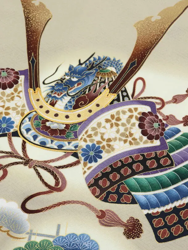 男児産着 お宮参り 1573 単衣 ベージュ地 宝船に兜